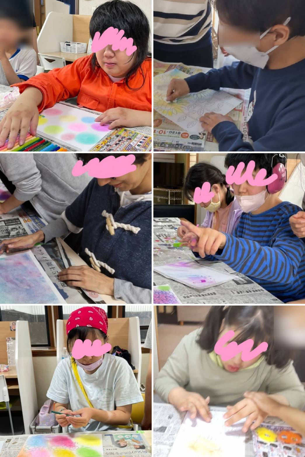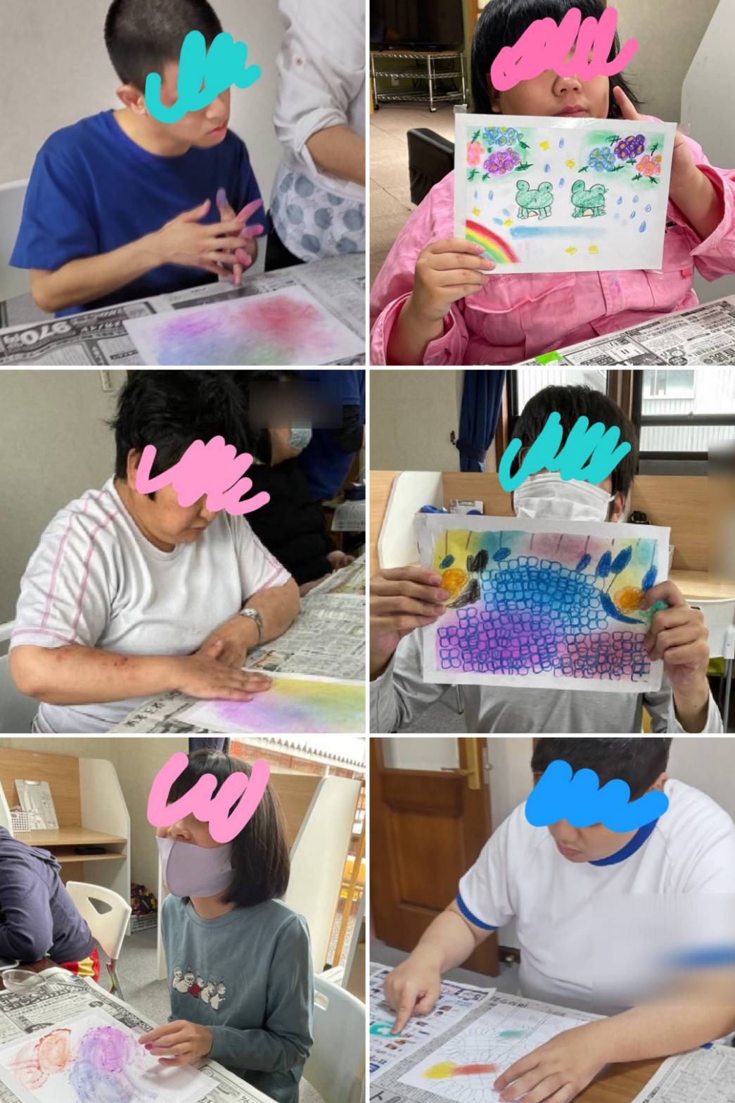 令和5年6月の活動風景2/2【きゃんぱす】 こんにちは。きゃんぱすです。 8月に突入してしばらく経ちますが、今回の記事は、6月活動紹介の後半部分です💦 梅雨の時季に取り組みをした、創作活動を中心にご紹介です。 皆さま、「描く・塗る・貼る・削る」など、様々な方法で作品を作られました。 〈その他の風景〉 皆さん熱心に取り組みされてました! ※諸事情で細い説明を省いていますが、ご容赦ください🙇 以上、6月の活動紹介2/2でした。