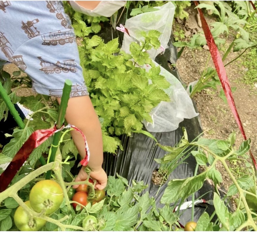 畑では初ナスがとれたり、トマトがたくさんできましたー!🍆🍅
