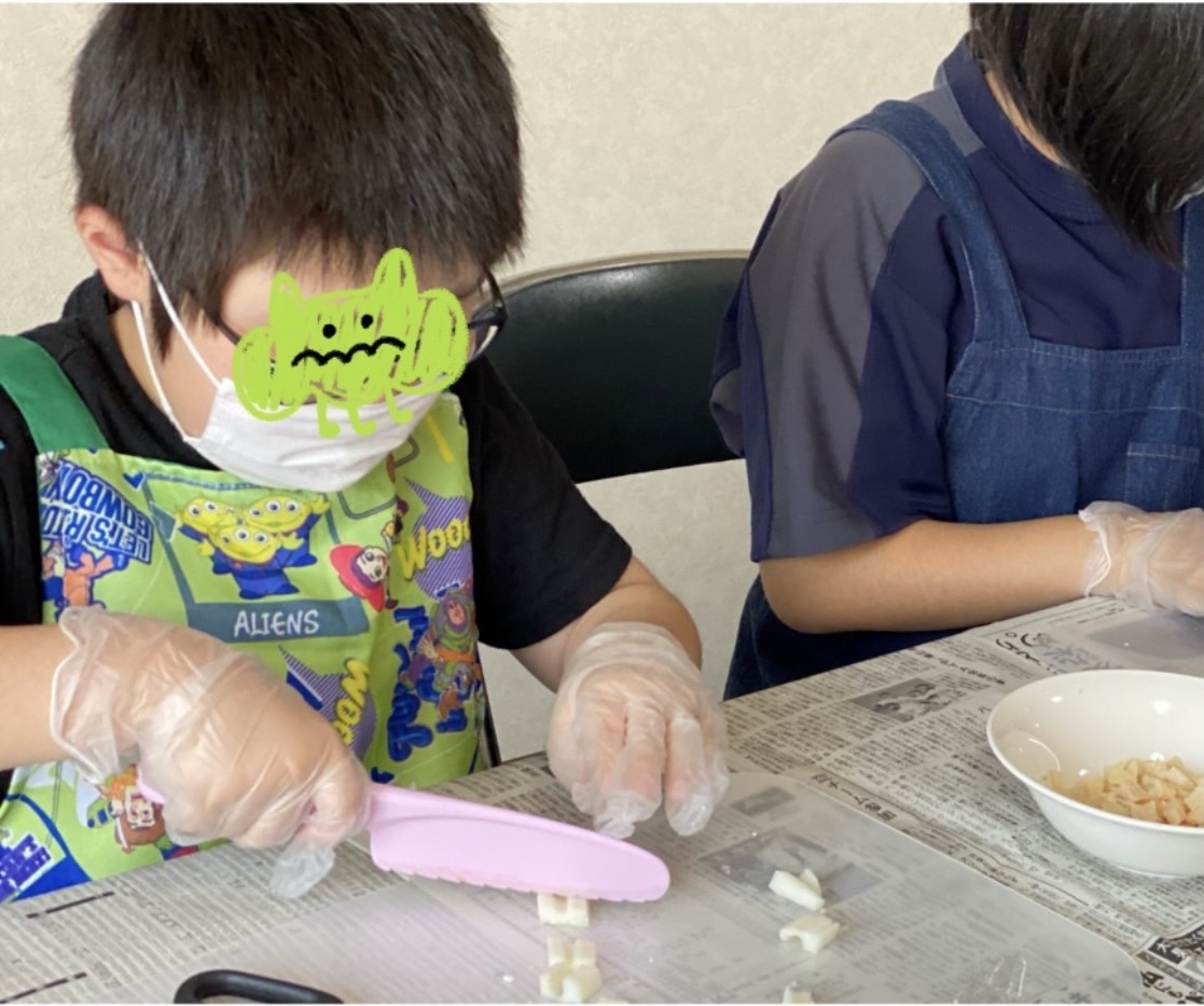 きゃんぱすにお邪魔し、合同クッキング。白玉おはぎと中華おこわを作りました。